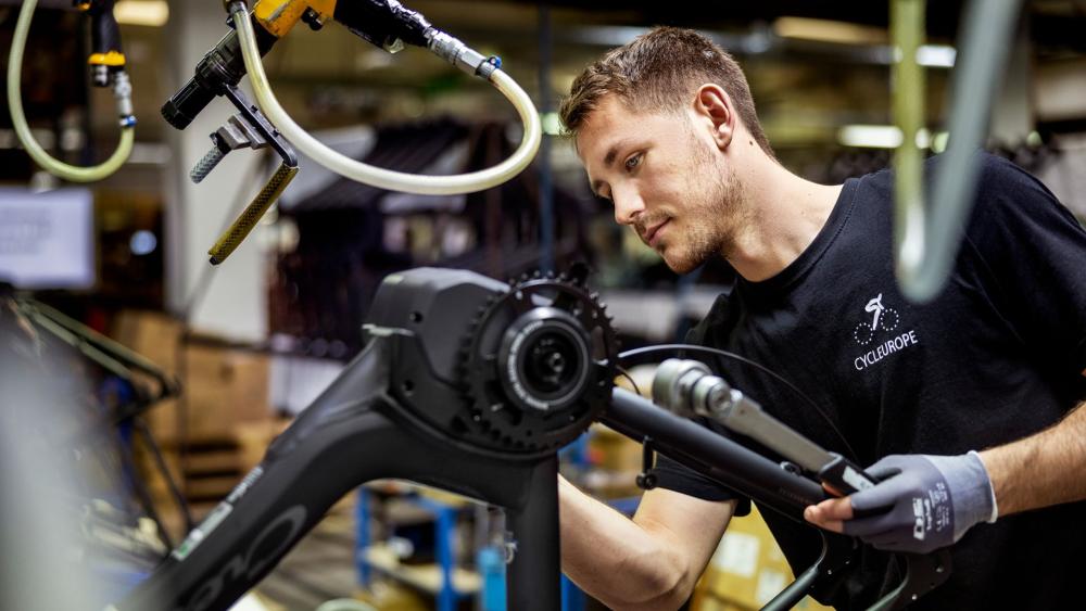 I vår montering föds och färdigställs cyklar och elcyklar på rad. Det är ett lagarbete med ett team på 4-5 personer som sätter samman din Crescent, en del i taget. Cykelns komponenter sätts på plats och ramen förses med hjul, styre och sadel.