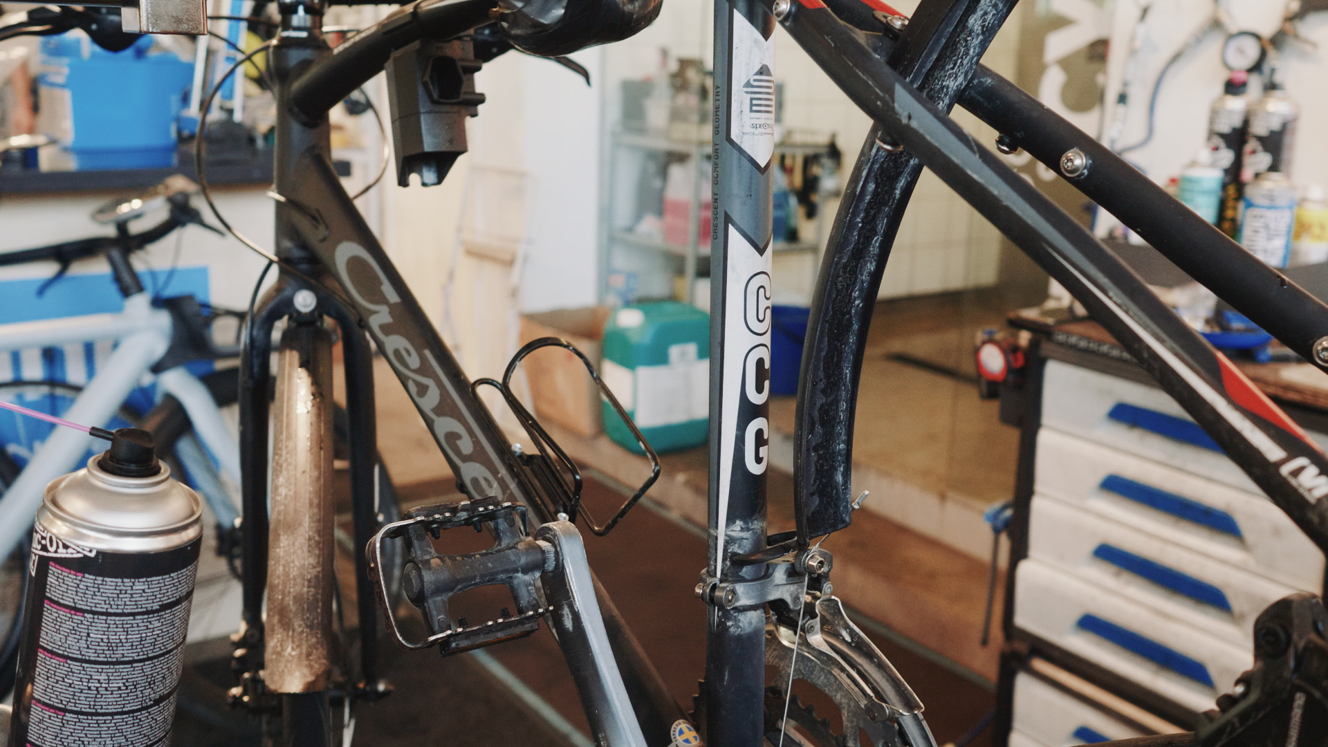- Börja med att skölja av cykeln för att få bort lös smuts och lera. Skölj helst med vattenslang.